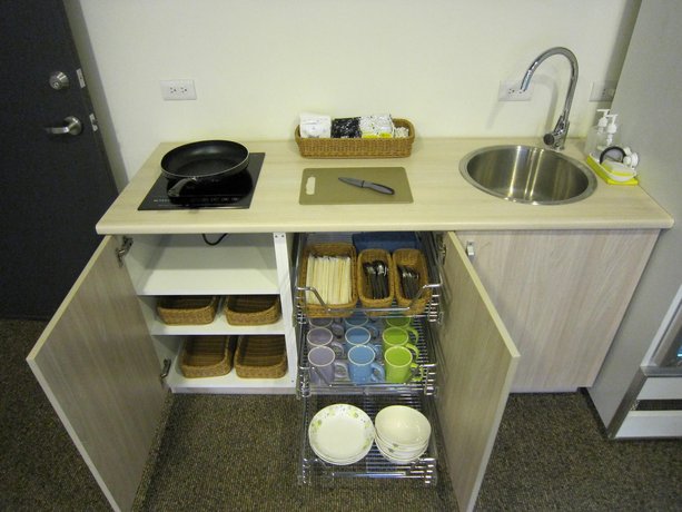 Air Conditioned, Non-Smoking Rooms, Refrigerator, Coffee / Tea Maker, Microwave, Hair Dryer, TV, Shared Bathroom, Shower, Kitchenette